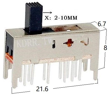 6.7*21.6*8MM VERTICAL 2P6T SLIDE SWITCH