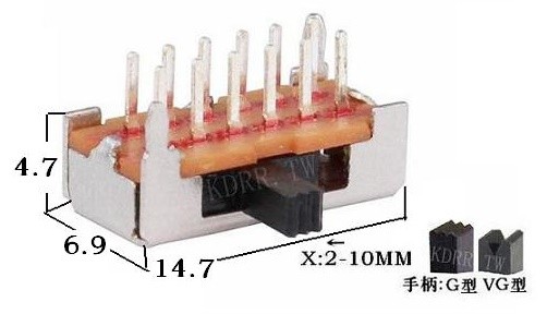 22*9.4*12MM 4P3T toggleswitch slideswitch