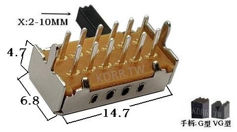 14.7*6.8*4.7 4T2P 4-speed slide switch
