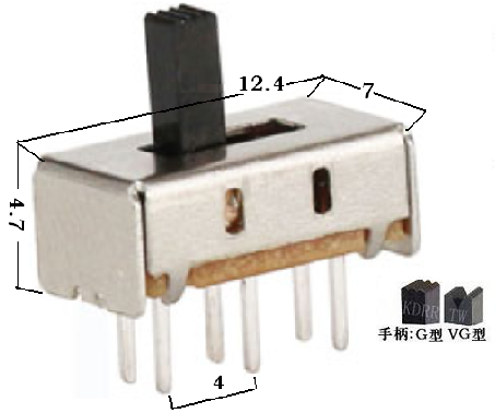 12.4*7*4.7MM Slide Switch Vertical - 2P2T
